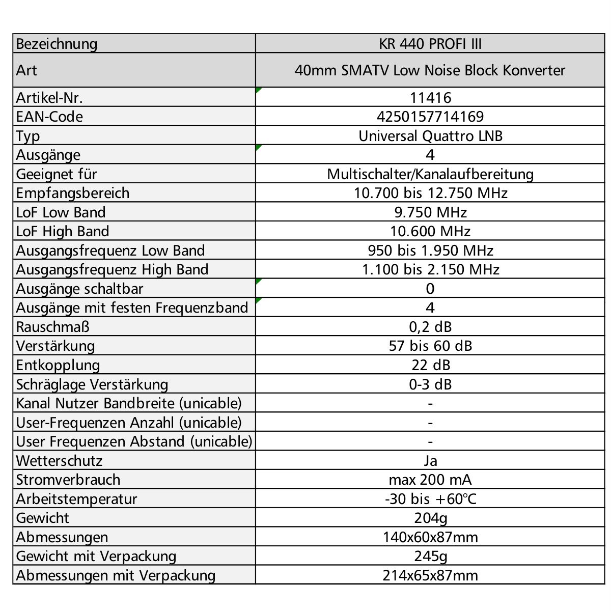 KR 440 PROFI III Universal Quattro LNB