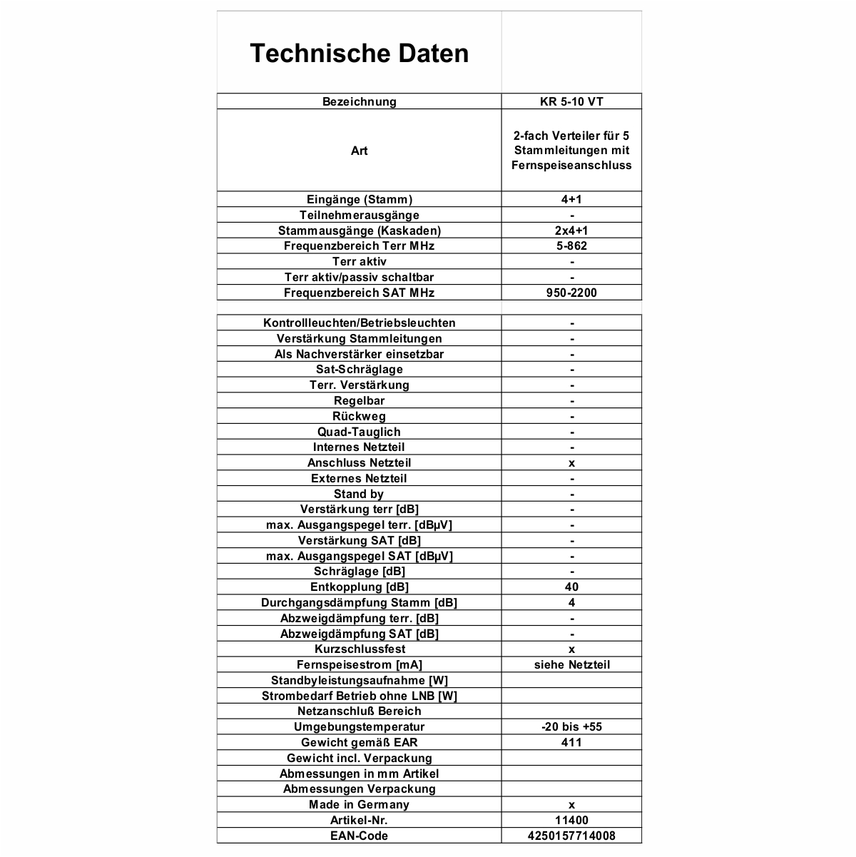 KR 5-10 VT Technische Daten